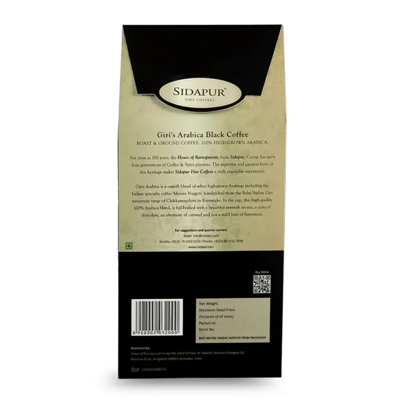 Sidapur Giri's Arabica Black Coffee Premium Roast and Ground Coffee 500g