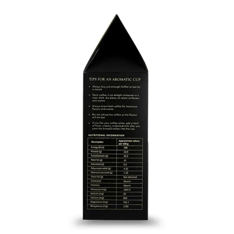 Sidapur – Giri’s Arabica Black Coffee is a superb blend of select high grown Arabicas including the Indian Speciality Coffee Mysore Nuggets handpicked from the Baba Budan Giri mountain range of Chikkamagaluru in Karnataka. Specially roasted and coarsely ground for use in French Presses, this high quality pure Arabica blend, is full bodied with a beautiful sweetish aroma, a note of chocolate, an aftertaste of caramel and just a mild hint of bitterness. Perfected for an aromatic and flavourful Black Coffee. Add undiluted milk and sugar if required.
